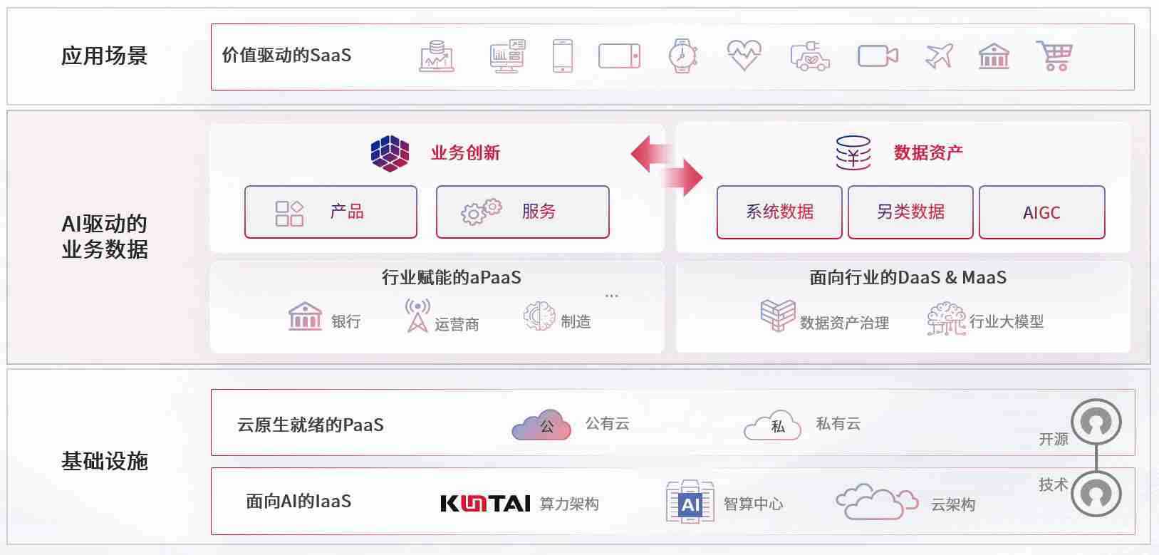 数字时代,,,,围绕企业数字化转型的关键要素,,,,人生就是搏数码开创性的提出数云融合战略和技术体系框架,,着力在云原生、、、数字原生、、AI原生和信创产业上架构产品和服务能力,,,,为处在不同数字化转型阶段的快消零售、、、、汽车、、金融、、、、医疗、、、政企、、教育、、、、运营商等行业客户提供泛在的敏捷IT能力和融合的数据驱动能力,,构建跨界融合创新的数字业务场景和新业务模式,,,,助力企业级客户建立面向未来的核心能力和竞争优势,,,,全面推动社会的数字化、、智能化转型升级。。。